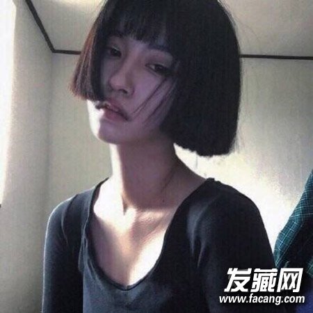 樱桃小丸子一样短发发型,齐刘海,整齐的发尾,凸显女生可爱气质,短直发设计清爽好打理,很有个性的一款女生发型。