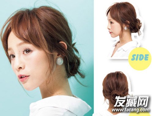 中分刘海搭配低发髻立马能提升气质,中分刘海搭配飘逸鬓角发丝修饰脸型轮廓,蓬松低发髻清爽有气质。妹子们可以试试。