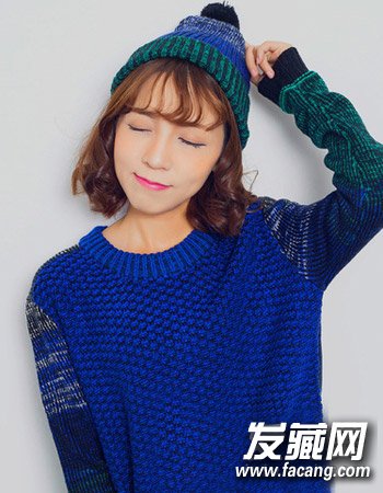 同样是一款可爱感十足的女生波波头发型,这种配合了清新的韩式空气感刘海发发型再配配合清新低调的棕色染发与发梢丰盈式的蛋卷头烫发发型更是彰显小女生的活泼可爱风的体现。