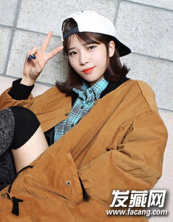 这种将发梢进行外翻式的烫发形式的中短发发型也越来越受到妹纸们的喜爱了,而配合清新自然的染发颜色与微微偏分式的空气感刘海更显小女生的俏皮可爱风,倒扣的休闲帽同样可爱感十足。