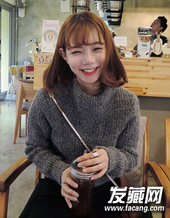 一款简单的女生中短发发型,这种比较常见但也百搭修颜式的中短发选项妹纸样不防谎,温暖的棕色染发与梨花烫形式的内扣式发梢造型,再与清新的空气感刘海相搭更晶粒小女生的甜美可爱感。