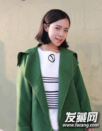 一款很显清爽气质风的可爱女生中短发发型,这种简单的将中短发进行偏分设计,厚重整齐的发梢造型最是清新感了,而利用发夹固定住头发的露额造型更显小女生五官的精致与可爱甜美风。