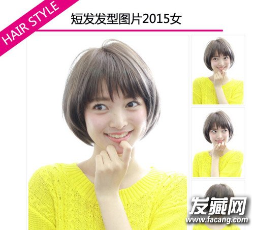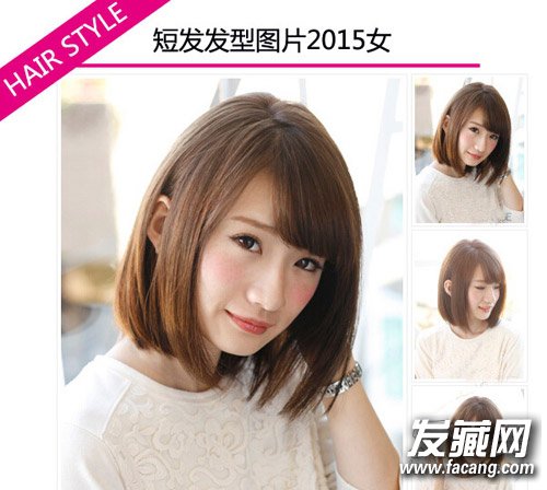 发型点评:整齐的波波头短发展现出灵动少女的纯美气质。碎发斜刘海轻盈飘逸,清爽率性。内扣波波头效果更显修颜。