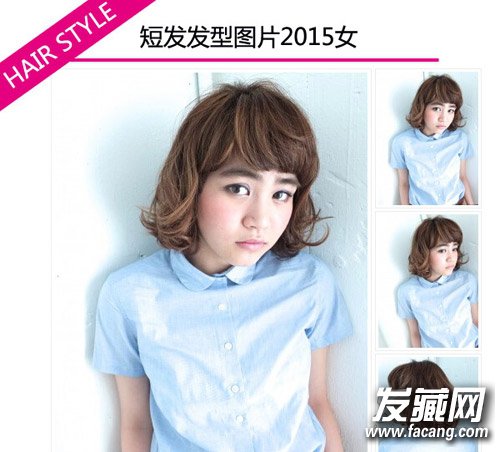 发型点评:前额的刘海烫出卷翘弧度,隐约露出眉毛的设计更显清爽时尚感。丰盈的短卷发俏皮可爱。