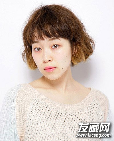 发型点评:蓬松的棕黄色波波头烫出立体饱满的效果,让头型看起来饱满大气。长长的刘海遮盖住眉眼,营造出神秘浪漫气息。