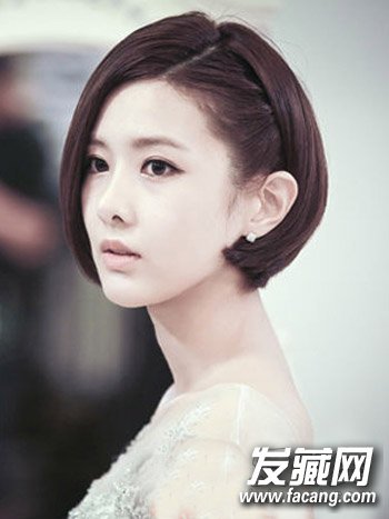 这款韩式波波头短发也是很多轻熟女们青睐的一款韩系短发发型设计,长斜刘海修饰脸型,一侧内弯的发丝在耳后打造出自然的弧形线条,清新显知性。