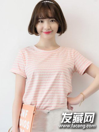 一款时尚的中短发滊发发型 ,空气刘海与发尾的小卷完美的凸显出时尚感来,搭配上发饰后更显气质感。