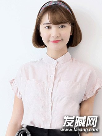 半月形的刘海与内蓬的短发设计不仅甜美而且很显气质哦,搭配上发带的点缀显露出无比的时尚感来。
