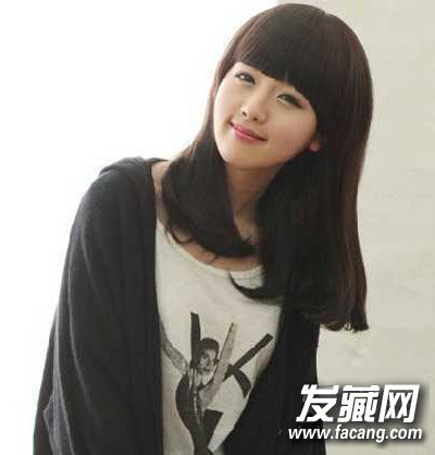 前面是齐刘海的打造,真是十分甜美哦!内扣发尾搭在肩上,既减龄又很瘦脸哦!加上一头自然黑发色,更是能衬托出白皙肌肤。