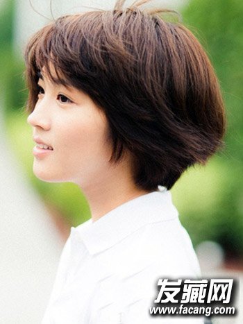 很有小清新气质的一款日系女生短发发型,发量多的MM可以尝试的一款清新短发,打理出层次感的发丝飘逸感十足。