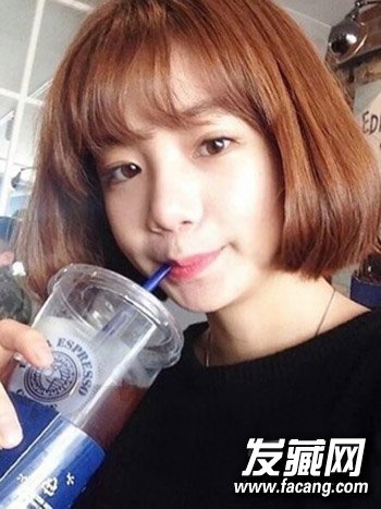 甜美的空气刘海与一款短发学生头搭配起来,时尚的黄棕色发色与内扣的造型打理完美的显露出别致的时尚感来。发尾的内扣自然清爽。