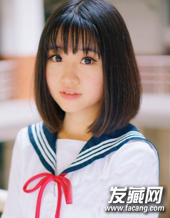 可爱的圆脸很有学生的气质,一款清新的学生短发发型搭配上薄透明的刘海设计,齐发尾与中短发直发搭配起来完美的显露出时尚与个性的一面,甜美十分。