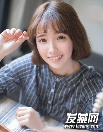 可爱的中短发发型的设计,空气刘海与齐耳短发搭配起来,中短发烫发时尚大气,勾勒出无比的时尚感来。