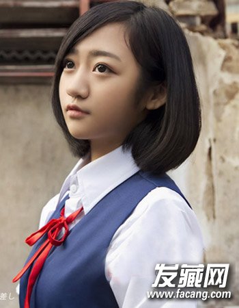 不对称的中短发发型也是学生发型的首选,这种偏分的设计增加了造型的时尚感,很适合女生们打造出别致的清新来。