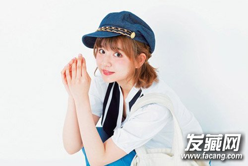 一款活泼的短发扎发,将中短发扎成侧扎小马尾,再戴上帽子可爱减龄,出游的时候很赞的一款发型。