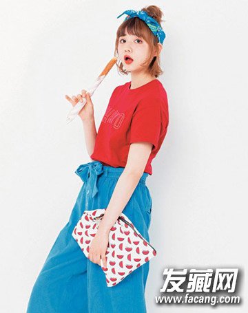 这样的半扎丸子头发型在今年也是很流行呢,加上刘海很发带修饰,阳光有活力。