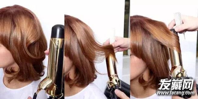 步骤三 最后我们来将脸颊两侧的略加修饰来达到修饰脸型的目的。自然抓起头发,45度往外卷,创造出大卷弧度就完成啦。