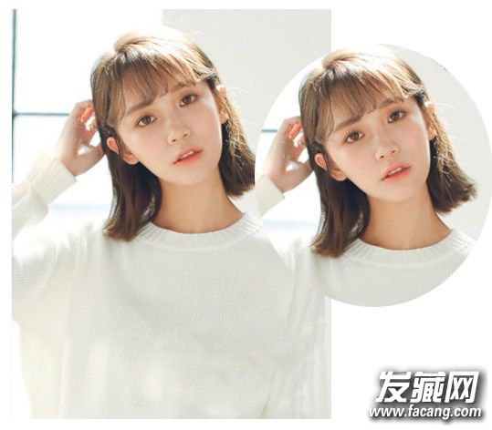 可爱的学生短发发型,甜美的空气刘海短发与齐肩中短发搭配起来,发尾的外翻将学生的清新与活泼刻画出来。