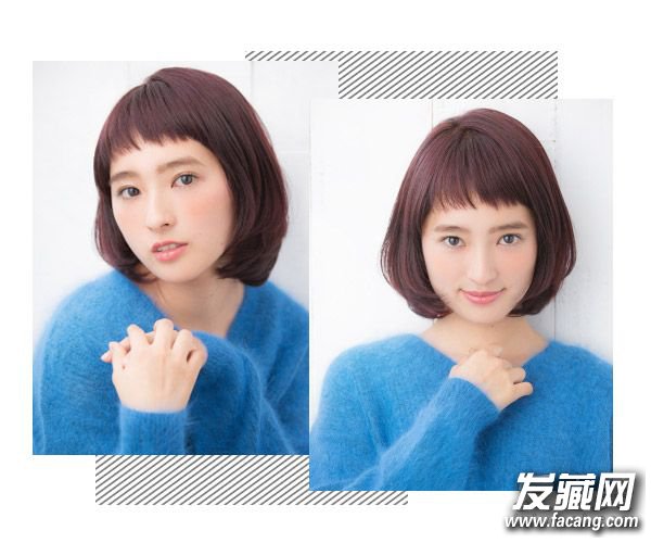 超时髦的眉上刘海搭配内扣波波头造型相对其他造型来说要难驾驭一点,但是时髦度上比上面的要高,所以颜值高有自信的妹子不妨一试。