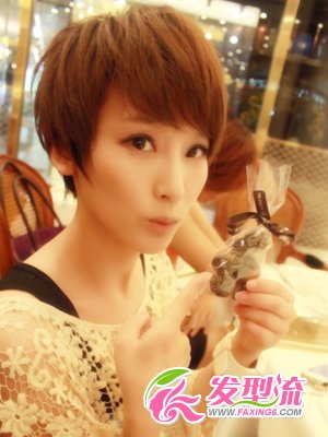 twins成员阿sa相比阿娇的艳丽形象,短发造型令她更多了份清新可爱的气质。中分刘海不经意的挽在耳后,显的很是乖巧,却不失小女人味道。