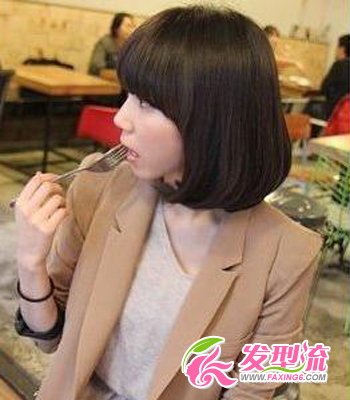 甜美可爱的bob头,蓬松厚重的发量丰富了整个造型。乌黑的发色显得低调自然却不失时尚感。齐刘海修剪出优美的弧度,极具造型感,带出女生的甜美气质。与两侧内弯的发尾搭配,完美的瘦脸效果。