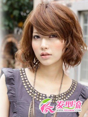 三七分的造型适合脸型稍微显胖得女生,长长的刘海有着较好的修饰圆脸的效果!整款女生短发以直发为主,至少在脸颊两处利用大号发棒打造出内卷蓬松的弧度,让脸型看起来更像巴掌脸的效果,干净的眉目是关键哦!