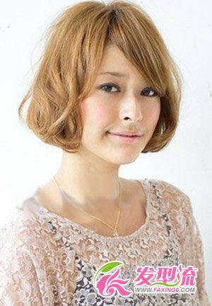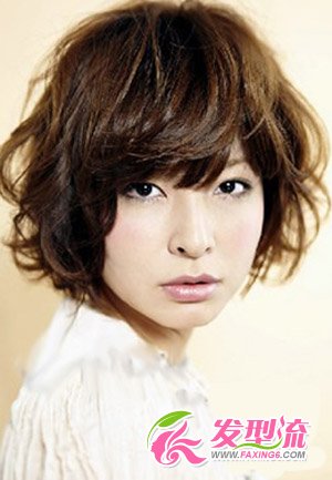 方脸的女生如果想要改变自己的脸型,那么首先就是需要遮盖住颧骨以及腮帮的位置!这款女生发型采用了S型螺旋卷的烫发设计,很好的将方脸的部分掩盖了起来,不经意的掩盖不显造作感,立体自然的螺旋卷与斜刘海的完美搭配,打造出尖尖的瓜子脸效果,搭配个性上衣,很美!