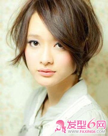 带有散漫感的这款短发款式很好地将圆脸掩饰了起来,起到了绝佳的小脸效果。带有毛躁感的造型就算平时早上时间不足也很容易打理,很适合早上经常睡过头没时间打理头发造型的OL们!