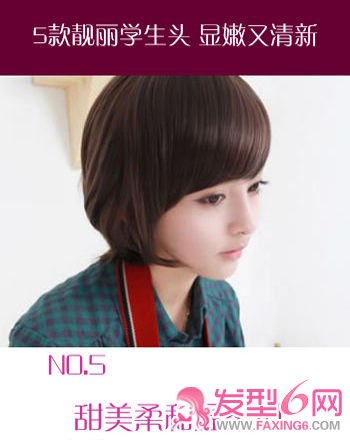 文静的MM们可以试试这学生头了,重点是刘海发梢的弧度与脸部沿线自然衔接,配合柔润丝般的直翻,就是知性和甜美的完美融合,留下温柔的印象。