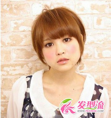 方形脸的女生也可以修剪短发,留下两旁头发贴紧遮住较宽的脸部,后面的头发可绕到耳后。齐眉刘海制造一点卷度和弧度,头顶可拉出一两条跳动的发丝,活泼型的邻家女生造型打造完毕!