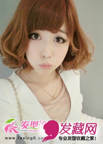 齐刘海+梨花头的短发发型,呈现了美眉甜美的淑女气质。棕黄色的是衬托皮肤的一大亮色染发,十分清甜美丽。