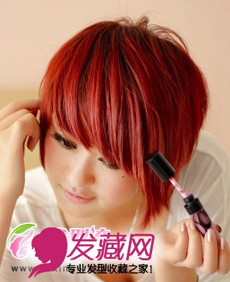 珊瑚红染发短发发型 展现个性魅力的短发发型融入珊瑚红的染发颜色,令这款短发发型更加个性有范,同时还衬托出女生更加白皙透亮的肌肤,发型有些层次感的修剪,使发型更富青春活力。