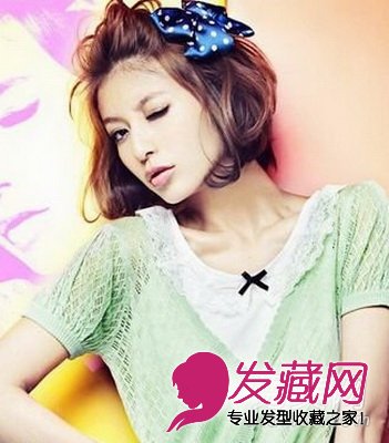 一款气场十足的女生短卷发发型,稍显几分凌乱感的女生发型融入了最新的时尚潮流元素,尽显潮女范儿。向上盘起的刘海露出光洁的额头,使精致的脸蛋显露无遗,搭配炫亮的蝴蝶结发饰非常抢眼。