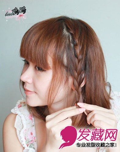 一直编到发尾处,用橡皮筋固定,注意编的松一些