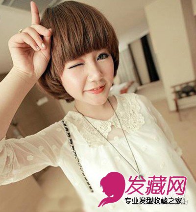 小编点评:蘑菇头本身就是很可爱的发型,搭配你的圆脸更显得娇俏可人了,绝对是卖萌装嫩的好发型哦。