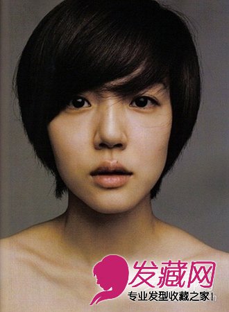 一款简单的短发发型,斜刘海的蘑菇头凸显迷人的大眼睛,两边头发的修饰更显小脸