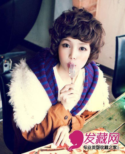 小编点评:小羊卷短发+褐色染发,可爱的羊羔卷发,配上羊羔毛的大衣,甜美升级。