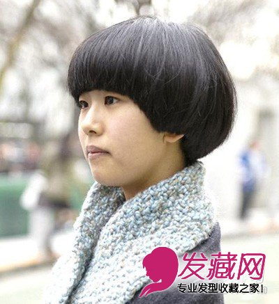 小编点评:非常可爱的一款蘑菇头,从耳际到前额刘海的弧度修剪非常精致,贴合脸型,厚厚的黑色短发更是简单自然,也是非常减龄的一款发型。
