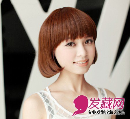 小编点评:很适合学生的一款短发,有着蛋卷头的可爱,和短发的清新自然。红棕色的染发显瘦显脸白,修脸效果特别好呢!