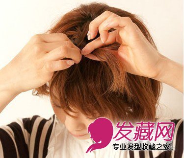 首先从刘海的根部取一小束头发编两节三股辫,然后从第三节开始,每编一层就从上侧有头发的地方,加进一小束的头发,继续往下编发。