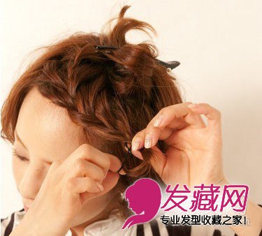 一直编到发尾处就用黑色的小皮筋固定起来。