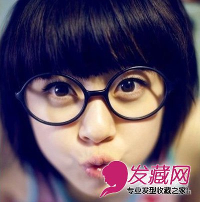 最合适学生美眉的可爱短发,纯纯的黑色,齐齐的修剪,整齐的造型,黑色大框眼镜,超可爱的女生短发造型。