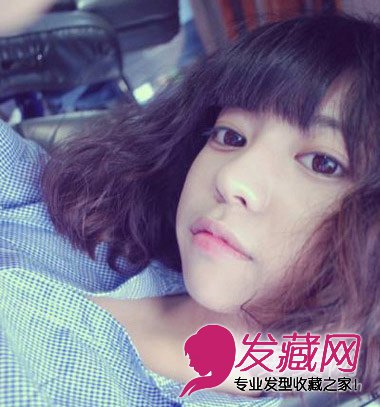 蓬松的麦穗烫短发自然可爱,搭配整齐的刘海精灵可爱而又减龄呢!