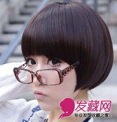 柔顺的伞形蘑菇头短发,直直的头发发丝,像一度小蘑菇扣在头顶,发尾的贴面处理,用弧度制造俏皮的少女味道,配搭眼镜,整体感觉更胜一筹。