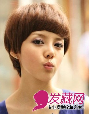 一款非常俏皮的蘑菇头短发发型,嘟嘴的可爱表情,配上水灵灵大的大眼睛。谁说短发的女孩不可爱。厚重的齐刘海,配上整体蓬松弧度圆润的造型,非常的好看。