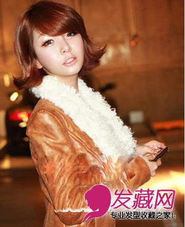 2013年韩国比较流行的一款短发发型哟,将发尾处做成微微的翘起感更能体现出时尚与个性所在,斜刘海与染发都是不可缺少的元素呢!