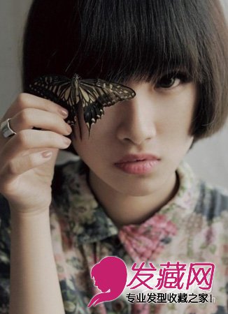 一款非常具有复古气息的文艺范短发发型,稍长的齐刘海搭在眉梢,两边的短发紧贴脸颊,非常的有设计感。很适合小脸的女生们。