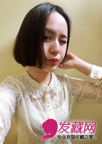 中分的波波头短发发型,非常的时尚好看,半眯眼嘟嘴的表情,显的非常的妖娆。配上白蕾丝的衬衣,真的是即甜美又性感呢。