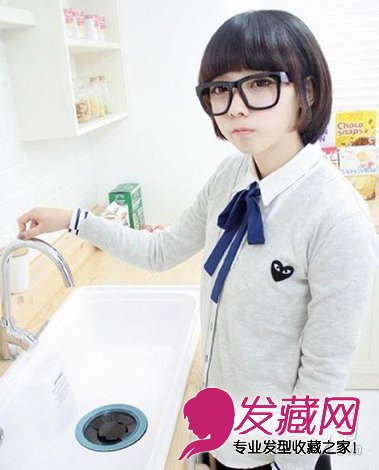 齐刘海的波波头发型,此款发型又与西瓜头或是锅盖头有异曲同工之处。配上大大的黑框眼睛,韩范十足。这一款发型很适合学生美眉呢!