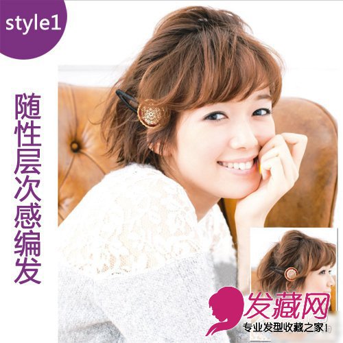 不要以为短发只能单调的披下来,其实短发的花样也是非常多的。短发编发短发盘发短发扎发,此款教程介绍了5款短发的diy发型,让你一次就搞定,短发也变得多种多样。下面先来看看第一款